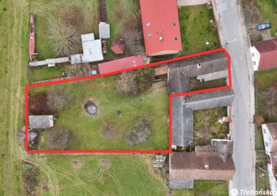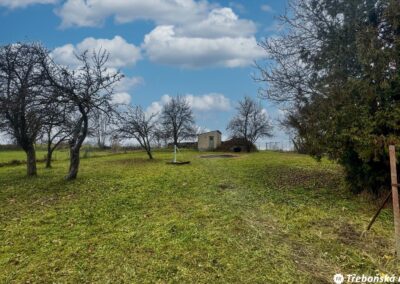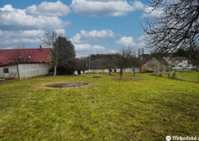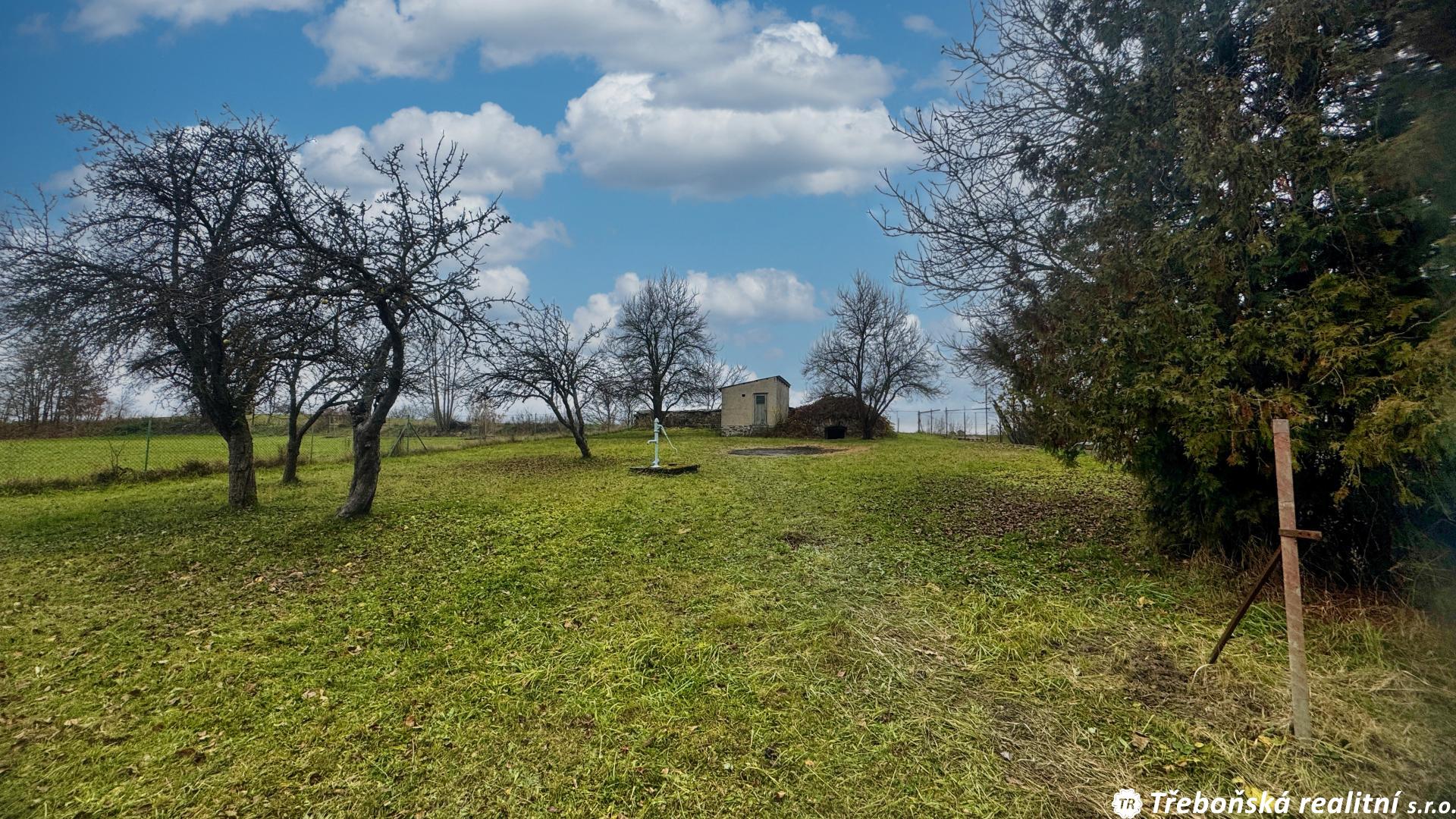 Součástí prodávaného domu je i krásná oplocená zahrada o výměře 952 m2 s hezkým výhledem do okolní přírody, která poskytuje dostatek klidu a nerušeného soukromí. V zadní části zahrady se nachází zděná garáž a původní sklepní prostor. V přední části zahrady po výstupu z průjezdu je umístěn další dřevník (kůlna).