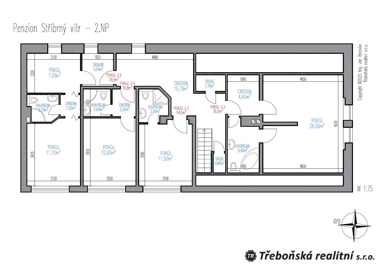 Dispoziční řešení a velikosti jednotlivých místností naleznete na přiloženém půdorysu.