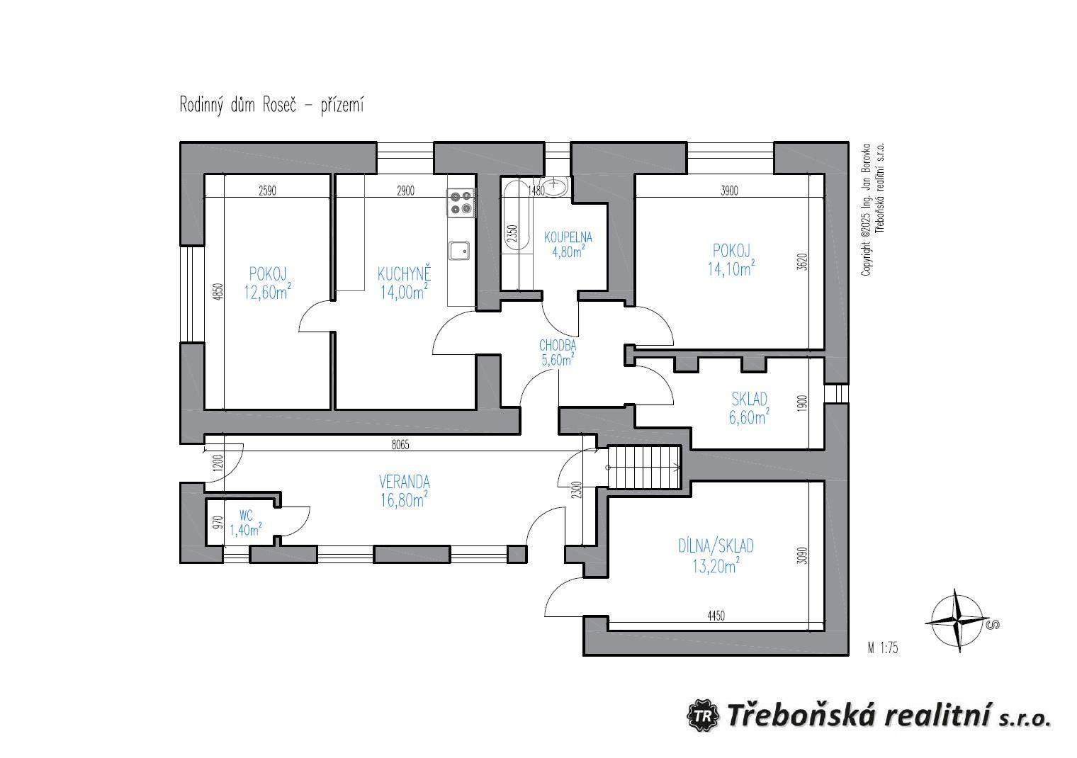 Dům má přibližné stáří 120 let a je tedy možné provést rekonstrukci dle svých představ. Dispozice domu je 3+1. Po vstupu do domu se nachází rozsáhlá předsíň, ze které se dále postupuje vlevo do ložnice a dále do kuchyně, vpravo je pak umístěna ložnice a další místnost, sloužící jako sklad. Ze vstupní chodby je pak výlez na prostornou půdu.