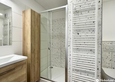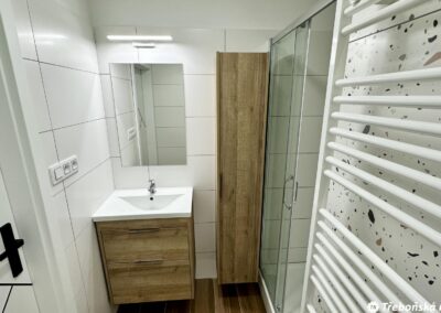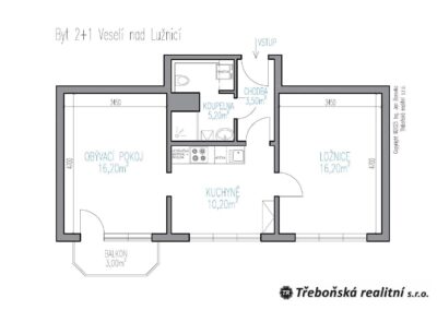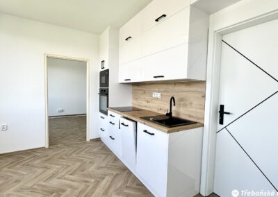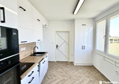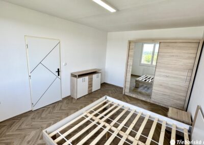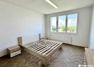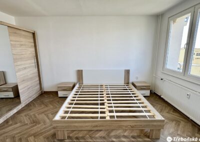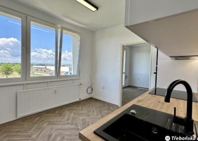 Byt po kompletní rekonstukci o celkové výměře 56 m2 je situován ve 2. patře panelového domu s výtahem. Skládá se z chodby, ze které jsou jednotlivé vstupy do koupelny s toaletou a do kuchyně, ze které jsou dále vstupy do ložnice a obývacího pokoje s balkonem. Dispoziční řešení a velikosti jednotlivých místností naleznete na přiloženém půdorysu.