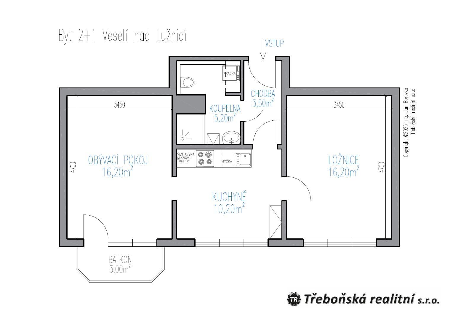 Nabízíme k pronájmu částečně zařízený byt 2+1 s balkonem po kompletní rekonstrukci na velice atraktivním místě ve Veselí nad Lužnicí.